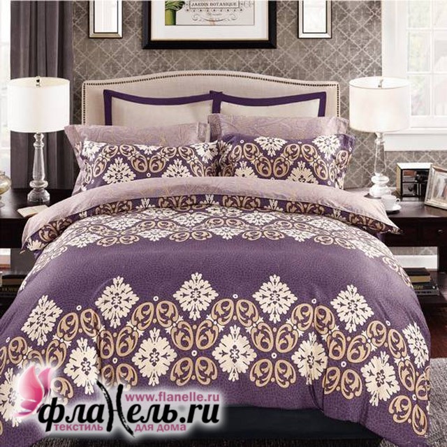 КПБ Cleo набивной сатин модель SL052, сатин, 100% хлопок, размер 1,5-сп, 2-сп - 2 наволочки 70х70 см, Евро и семейный - 4 наволочки (по 2 шт. 50х70 и 70х70 см)