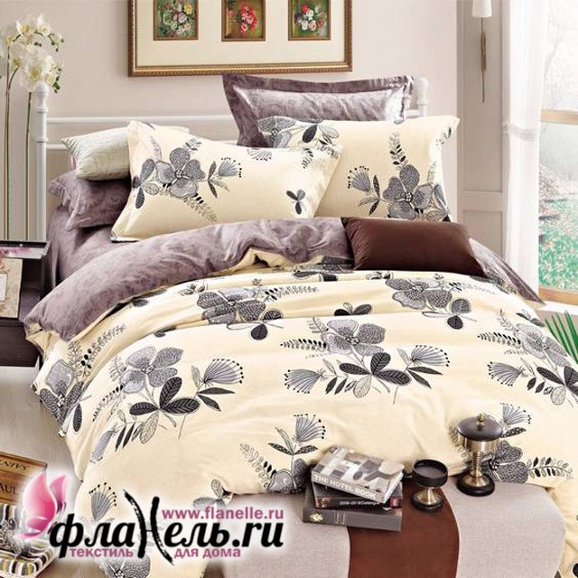 КПБ Cleo набивной сатин модель SL073, сатин, 100% хлопок, размер 1,5-сп, 2-сп - 2 наволочки 70х70 см, Евро и семейный - 4 наволочки (по 2 шт. 50х70 и 70х70 см)