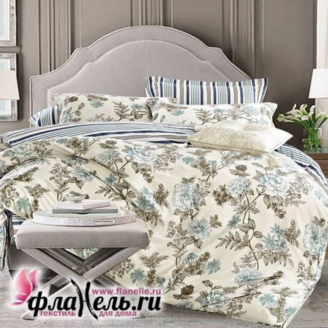 КПБ Cleo набивной сатин модель SL096, сатин, 100% хлопок, размер 1,5-сп, 2-сп - 2 наволочки 70х70 см, Евро и семейный - 4 наволочки (по 2 шт. 50х70 и 70х70 см)