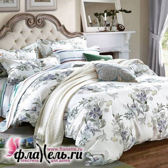 КПБ Cleo набивной сатин модель SL103, сатин, 100% хлопок, размер 1,5-сп, 2-сп - 2 наволочки 70х70 см, Евро и семейный - 4 наволочки (по 2 шт. 50х70 и 70х70 см)